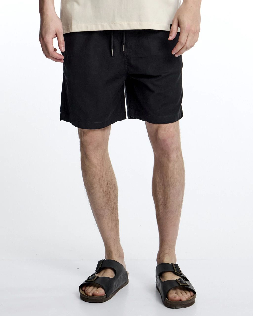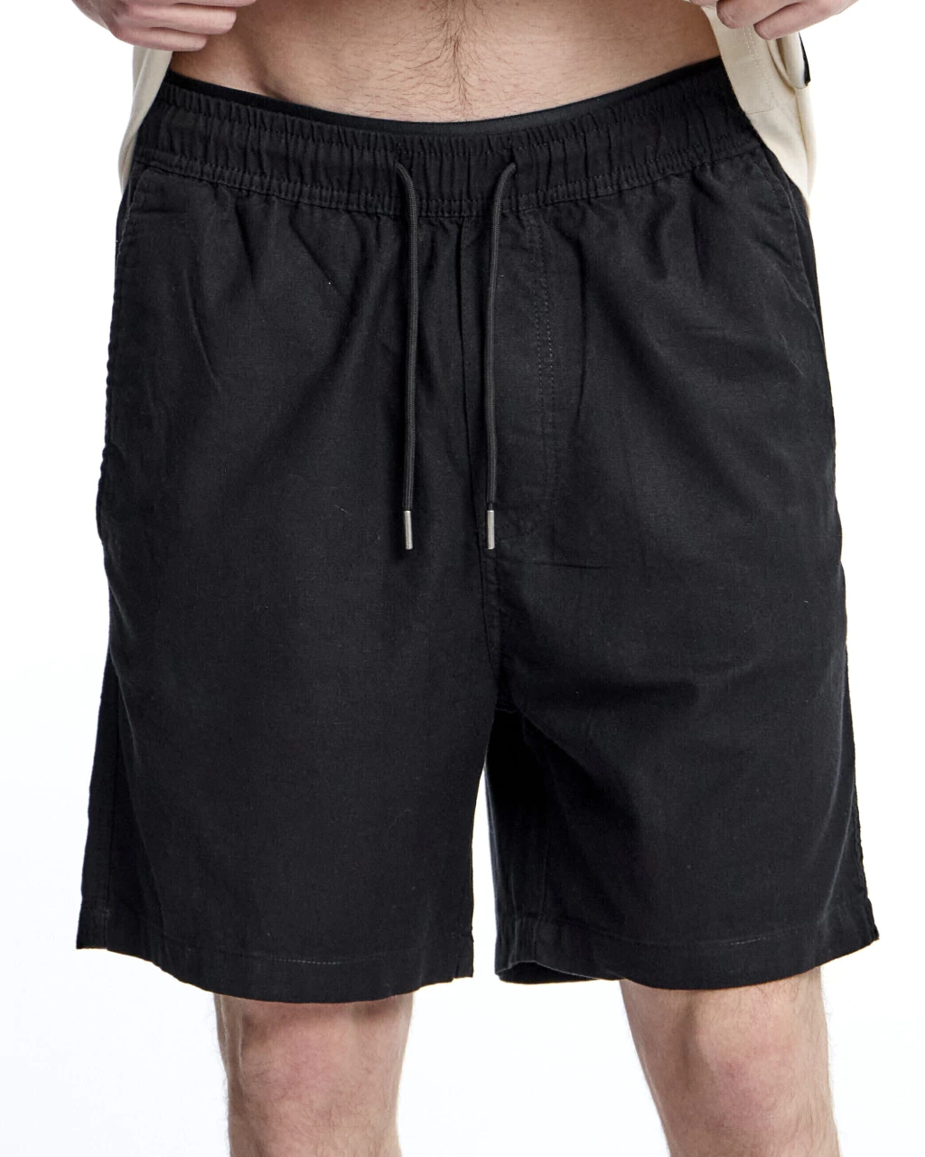 Bermuda de lino con cintura elástica y cordón regulable, Bolsillos delanteros y bolsillos traseros con ojal.