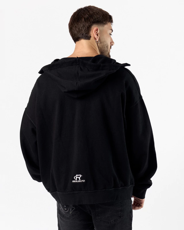 Hoodie con capucha estilo pasamontañas confeccionado en un Rústico 100% pero con el detalle único y exclusivo de haberse confeccionado al revés, dándole toda la onda al artículo. Cierre desmontable y bolsillos laterales. Cuenta con su bordado en uno de los costados del frente y también en la parte inferior de la espalda, ambos en contra tono.