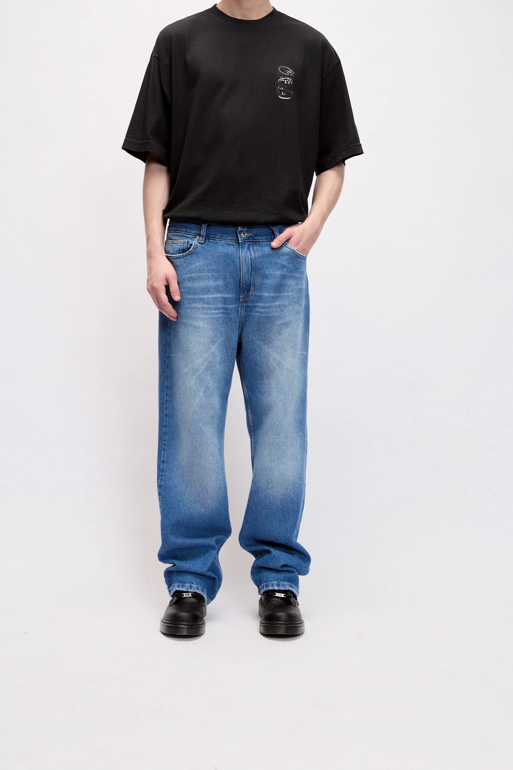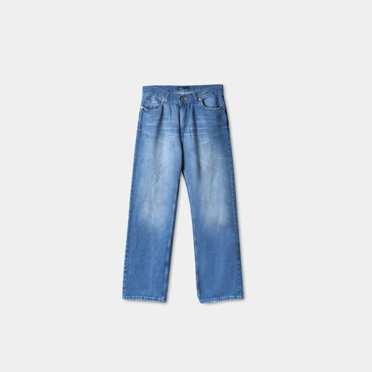 - Elaborado con Denim rígido 100% algodón de 11 onzas. lavado desgastado para lograr un aspecto vintage y pequeñas roturas en los pliegues, como en el tobillo y en los bolsillos. Avíos metálico y botón FRÈRES, cierres YKK y etiqueta simil cuero grabado en la cintura.