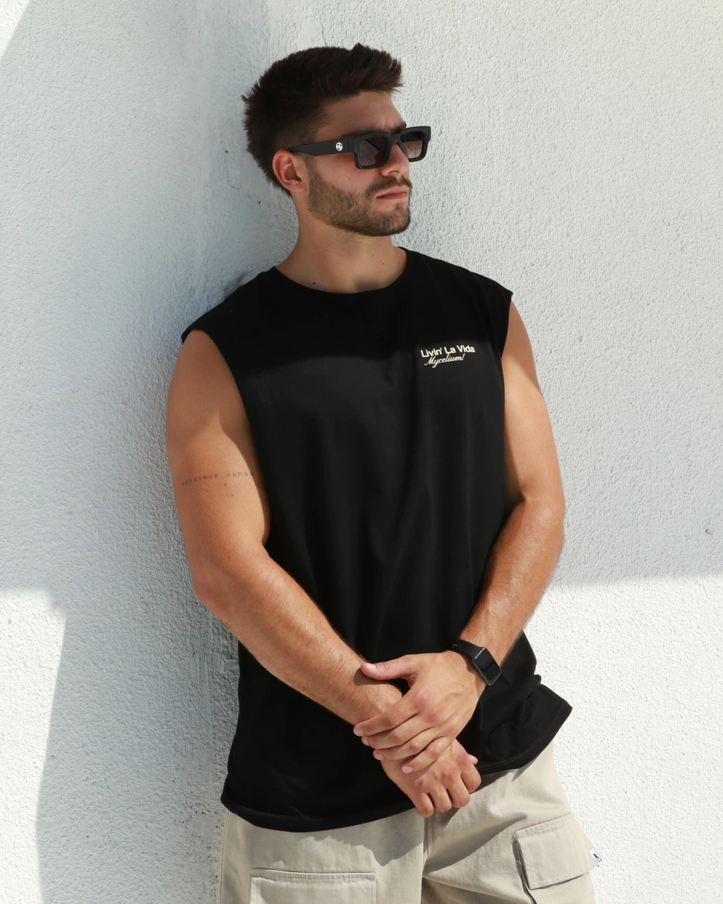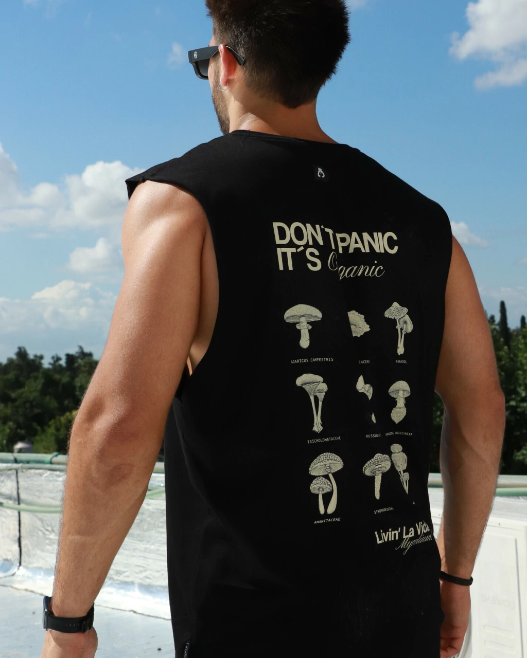 Musculosa regular cavada, de 100% algodón, con estampa en frente y en espalda.